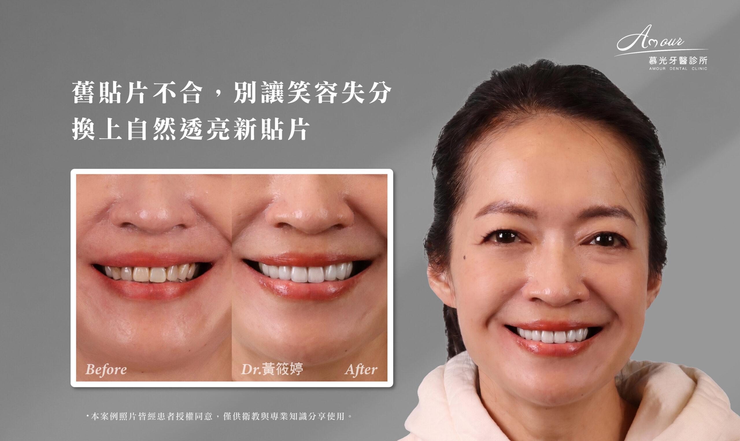 換掉舊假牙,改善染色蛀牙,找回自然協調的笑容!