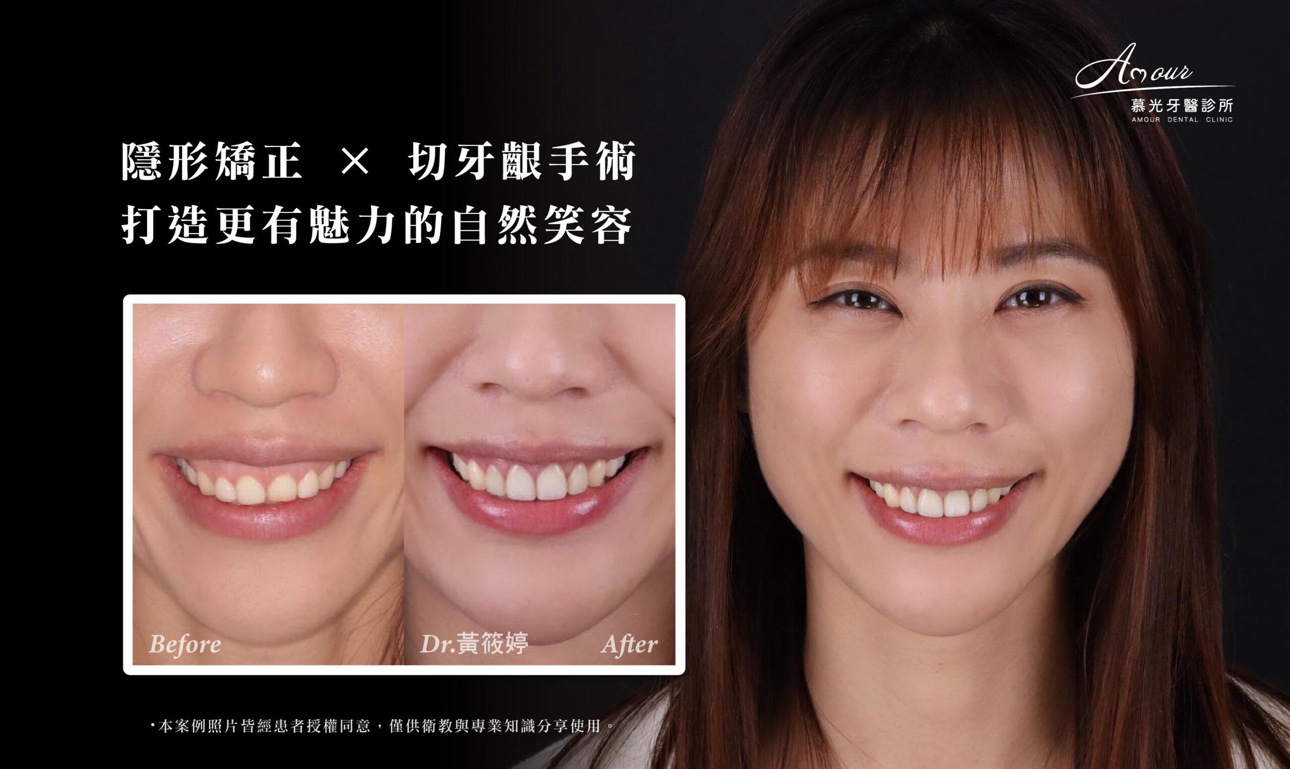 透過隱形矯正微調與牙齦修型,打造更協調自然的迷人笑容!