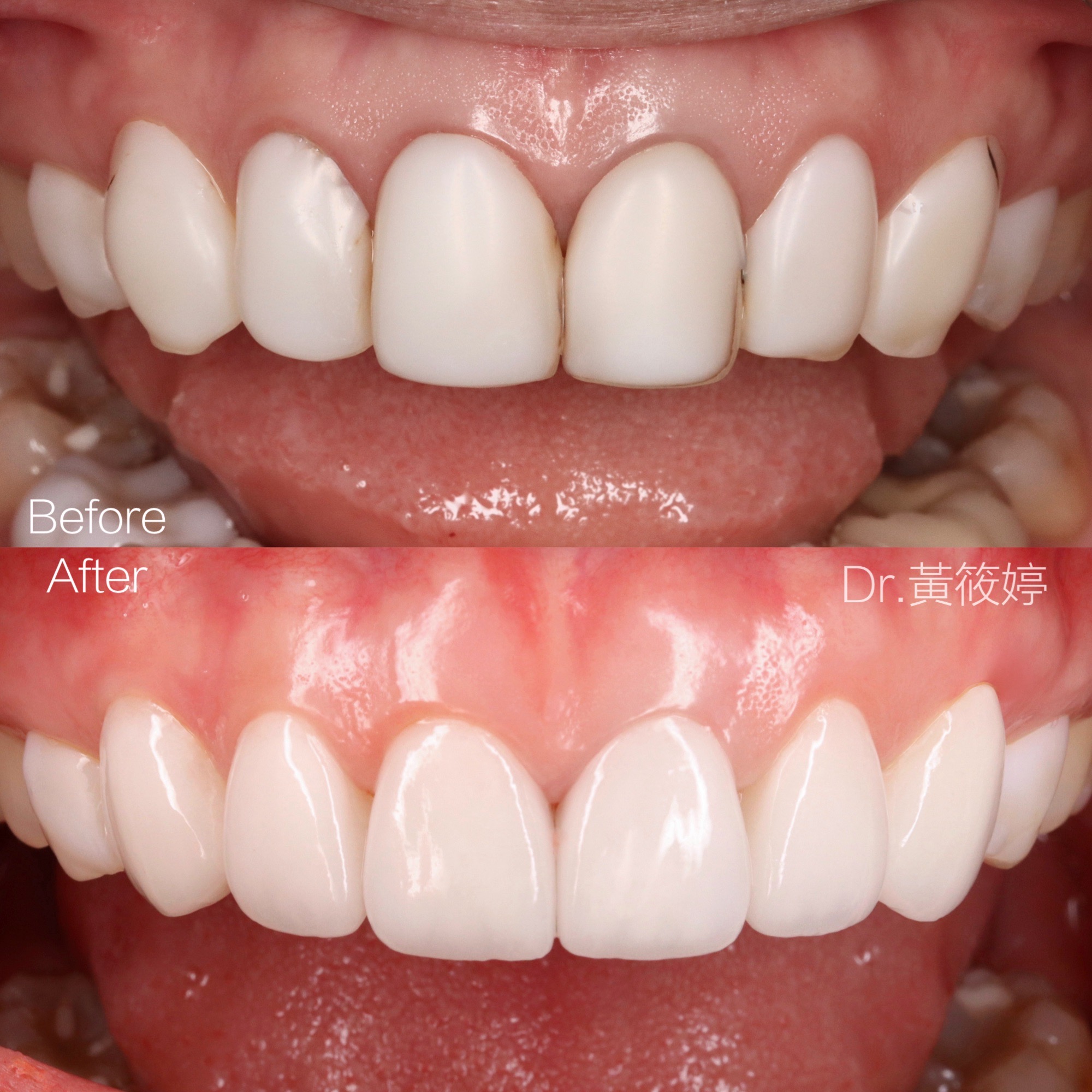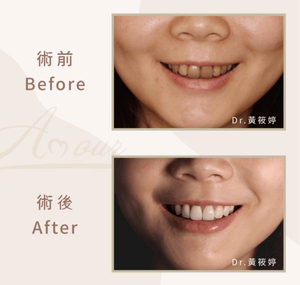 自然:貼片透光度與色澤如真牙一般非常自然。快速:治療時間短,適合短時間內想達到效果的人。效率:能同時改善牙齒顏色與外觀。品質:貼片的透光度良好,使牙齦不容易變黑。